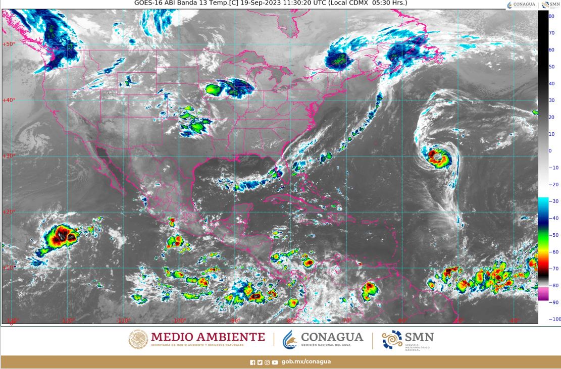 Por otra parte, canales de baja presión sobre la región norte, centro y sureste del territorio nacional, además de la Península de Yucatán aunado con el ingreso de humedad de ambos océanos, propiciarán chubascos y lluvias fuertes sobre entidades de esas regiones, pronosticándose lluvias puntuales muy fuertes en Guerrero y Oaxaca.