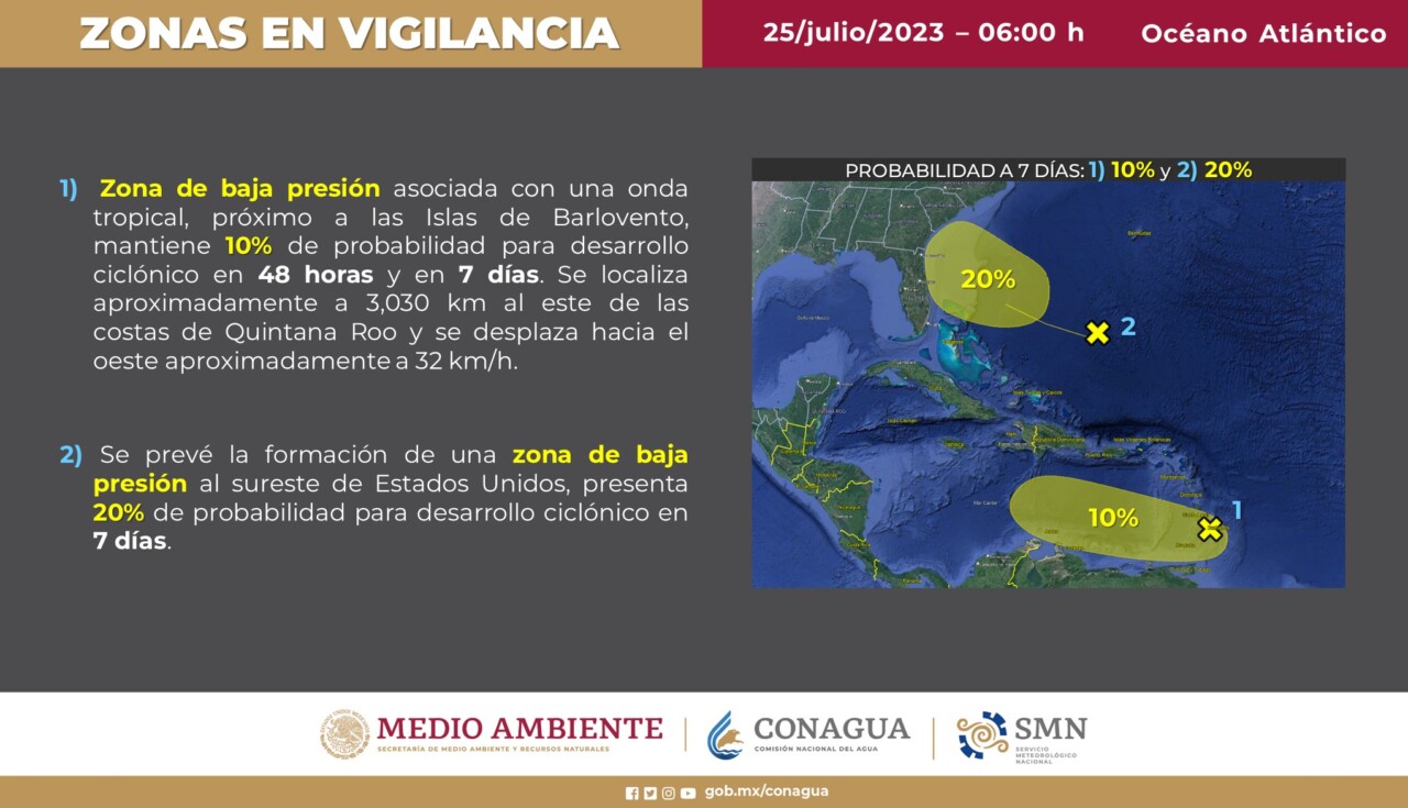 Pronóstico del clima para hoy martes 25 de julio 2023 en Quintana Roo. Hoy martes, la onda tropical número 16 recorrerá el occidente del territorio nacional, en interacción con la afluencia de humedad del océano Pacífico, ocasionarán lluvias puntuales intensas en Nayarit, Jalisco y Colima.