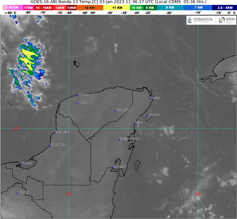 Pronóstico del clima para hoy martes 3 de enero en Quintana Roo; cielo medio nublado a nublado con lluvias aisladas por la tarde en la entidad.