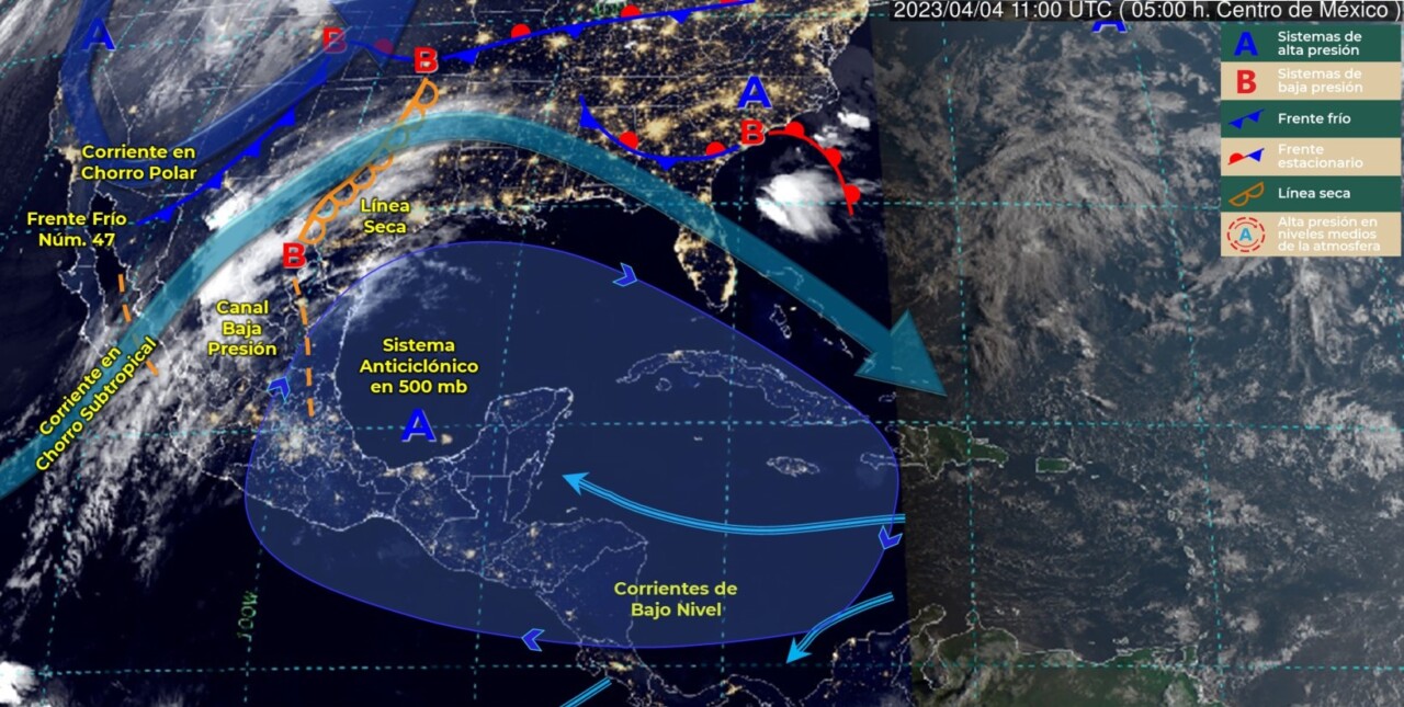 Pronóstico del clima para hoy martes 4 de marzo 2023 en Quintana Roo. Para este día, el frente frío número 47 se desplazará hacia el norte del país, y en interacción con las corrientes en chorro polar y subtropical, ocasionarán rachas de viento muy fuertes a intensas, de 80 a 100 km/h con tolvaneras, en Chihuahua; además de rachas de 60 a 80 km/h en el Golfo de California, y con tolvaneras en Baja California, Baja California Sur, Sonora, Durango, Zacatecas y Coahuila.