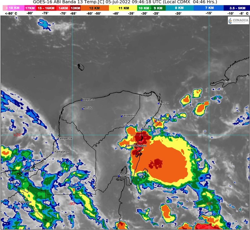 Pronóstico del clima para hoy martes 5 de julio en Quintana Roo. Para este día, el huracán “Bonnie” de categoría 2 en la escala Saffir-Simpson, continuará su desplazamiento paralelo a costas del Pacífico Mexicano, localizándose al sur de las costas de Colima y Jalisco, sus extensas bandas nubosas mantendrán lluvias fuertes a muy fuertes acompañadas de descargas eléctricas en los estados del occidente, centro y sur del territorio nacional, con lluvias puntuales intensas.