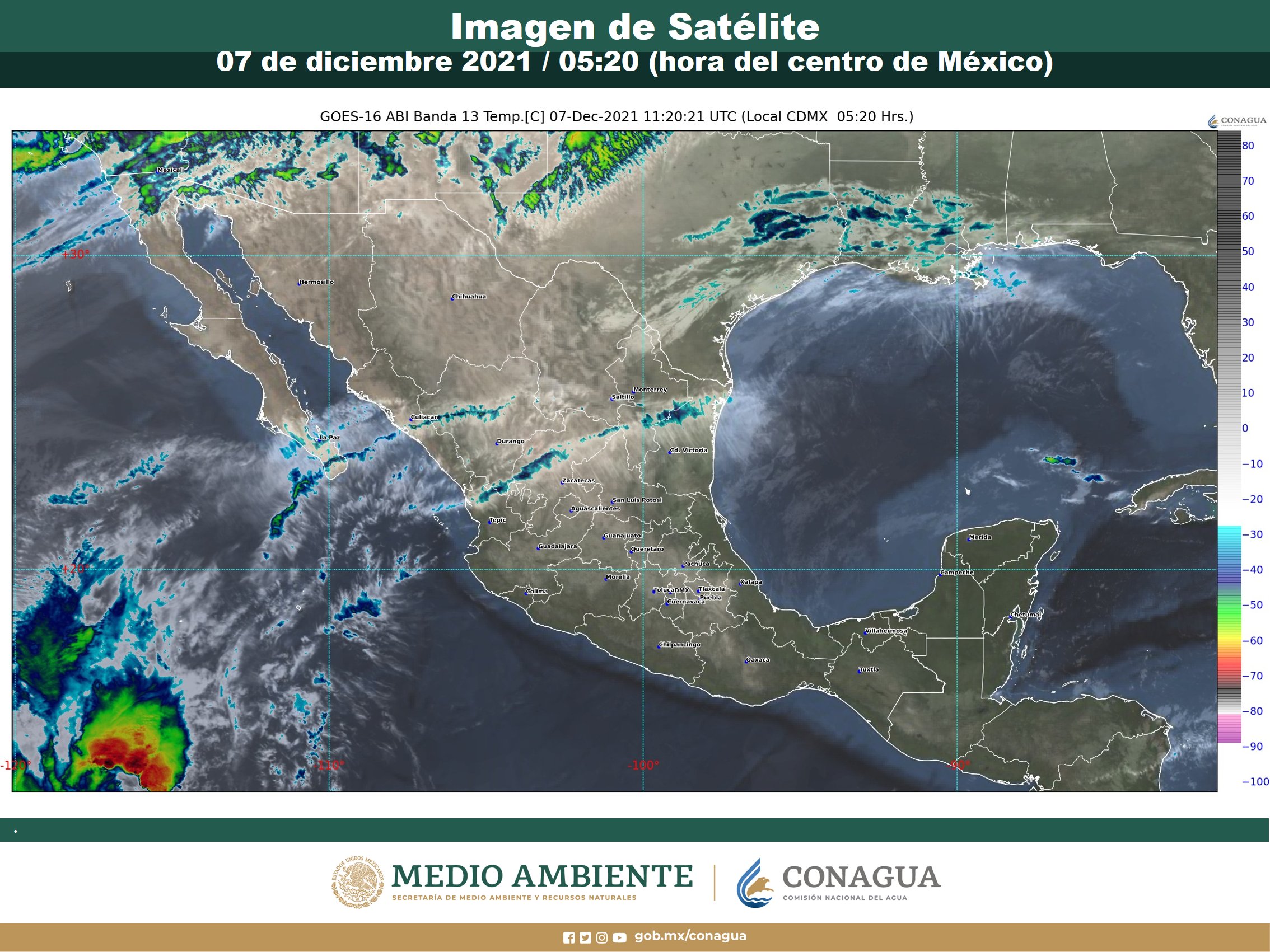 Un canal de baja presión se localizará sobre el suroeste del Golfo de México e interaccionará con la entrada de humedad de ambos océanos, provocando lluvias y chubascos dispersos en regiones de Veracruz, Oaxaca, Chiapas y Quintana Roo.