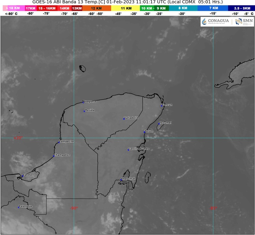 Pronóstico del clima para hoy miércoles 1 de febrero en Quintana Roo; cielo medio nublado con lluvias aisladas en la Península de Yucatán.