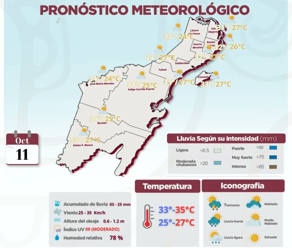 Pronóstico del clima para hoy miércoles 11 de octubre 2023 en Quintana Roo