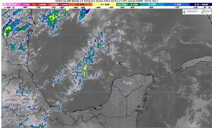 Pronóstico del clima para hoy miércoles 18 de enero 2023 en Quintana Roo. Para hoy, el frente frío Núm. 25 avanzará sobre el noreste de la República Mexicana, favoreciendo la probabilidad de lluvias aisladas en Tamaulipas y rachas de viento fuertes en Tamaulipas y San Luis Potosí, mismas que se acompañarán de tolvaneras en zonas de Nuevo León. Por su parte la Tercera Tormenta Invernal se localizará próxima a la frontera norte de México, lo que ocasionará ambiente matutino muy frío a gélido y rachas de viento fuertes con tolvaneras en el norte del país, además de mantener condiciones favorables para la caída de aguanieve y/o nieve durante esta mañana en zonas serranas de Sonora y Chihuahua. Se pronostica que al final del día, la tercera tormenta invernal se desplace sobre la región central de Estados Unidos, dejando de afectar al territorio mexicano. Además, continuará el oleaje elevado de 1 a 3 metros de altura en la costa oeste de la Península de Baja California. Asimismo, un sistema de alta presión en el Golfo de México mantendrá el evento de «surada» con rachas de viento de 60 a 70 km/h en el Istmo y Golfo de Tehuantepec; y con rachas de 50 a 60 km/h en Tamaulipas, Veracruz y Tabasco que cambiarán a viento de componente norte a partir de la tarde; además de favorecer rachas de viento del sureste con igual intensidad, en Campeche, Yucatán y Quintana Roo. Finalmente, el ingreso de humedad del océano Pacífico y el Mar Caribe hacia el sureste mexicano y la Península de Yucatán, generará probabilidad de lluvias aisladas en los estados de Oaxaca, Chiapas y Quintana Roo.