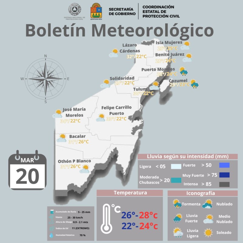 Pronóstico del clima para hoy miércoles 20 de marzo de 2024 en Quintana Roo