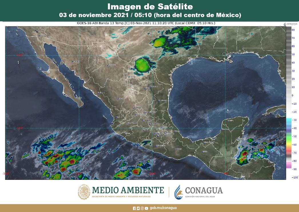Por otro lado, canales de baja presión sobre Chiapas y a lo largo de la Sierra Madre Occidental, en interacción con el ingreso de humedad del océano Pacífico y Golfo de México, ocasionarán intervalos de chubascos en el occidente y sur del territorio y lluvias puntuales fuertes en el sureste de México.