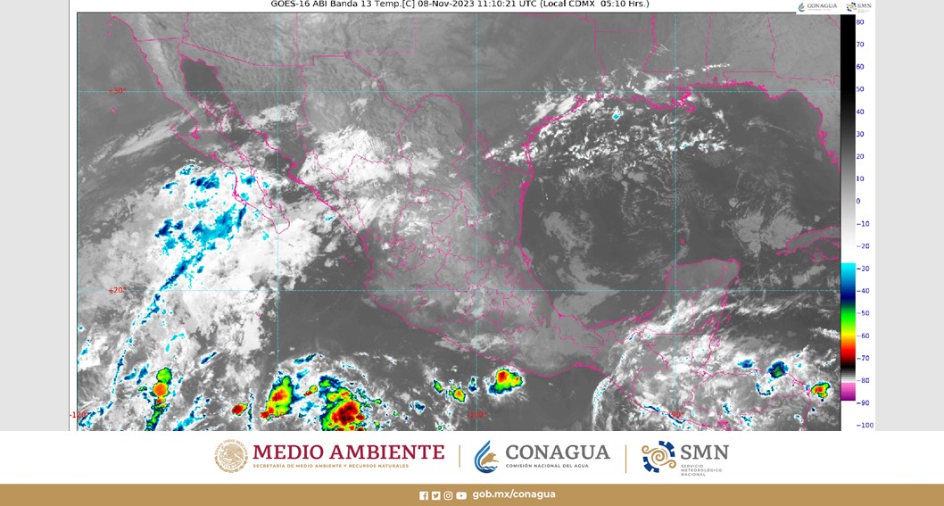 Por otro lado, el nuevo frente frío número 9 que se aproximará a la frontera norte de México y se prolongará desde el noroeste de Sonora hasta el sur de Baja California, mantendrá interacción con la entrada de humedad del Océano Pacífico.