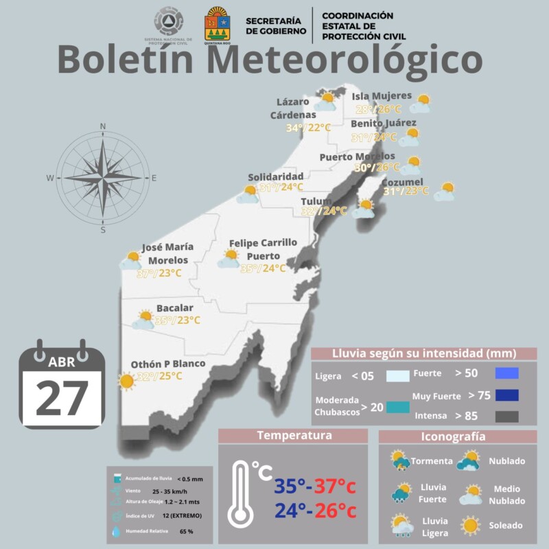 Pronóstico del clima para hoy sábado 27 de abril de 2024 en Quintana Roo