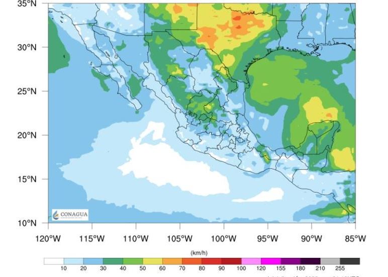 Dicho frente, interaccionará con la corriente en chorro subtropical y con la aproximación de un nuevo frente frío a la frontera norte de México, generando fuertes rachas de viento con probabilidad de tolvaneras en estados del norte y noreste del país.