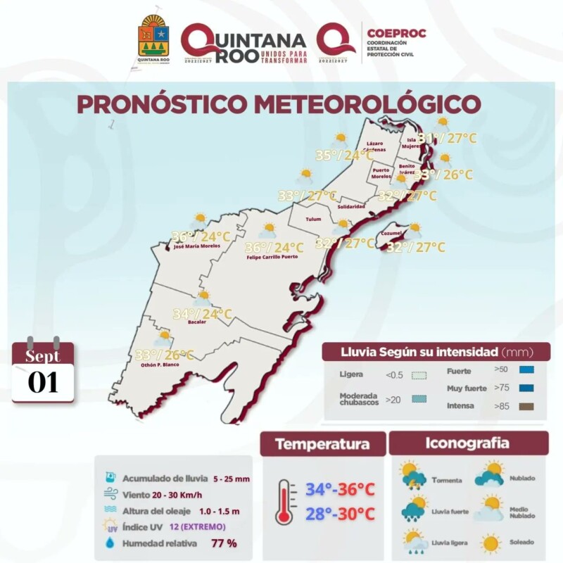 Pronóstico del clima para hoy viernes 1 de septiembre 2023 en Quintana Roo