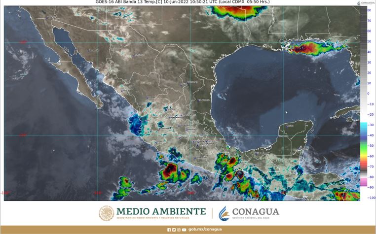 Además, en interacción con un canal de baja presión, que se extenderá sobre el norte, occidente y centro de México, con inestabilidad en niveles altos de la atmósfera y con el ingreso de humedad del Océano Pacífico y Golfo de México, ocasionará chubascos y lluvias fuertes, descargas eléctricas y posible caída de granizo en dichas regiones, incluido el Valle de México.