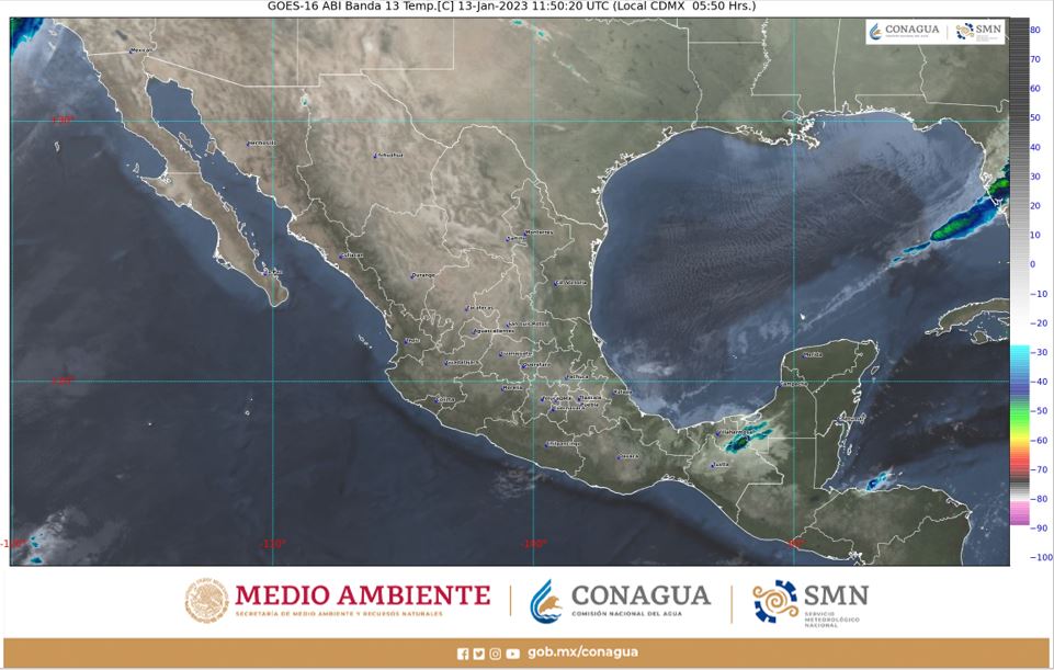 Pronóstico del clima para hoy viernes 13 de enero 2023 en Quintana Roo. Este día, el frente frío número 23 recorrerá rápidamente el sureste del territorio nacional y la Península de Yucatán, a su paso originará lluvias puntuales intensas en Veracruz, Oaxaca, Chiapas y Tabasco; lluvias muy fuertes en Campeche, además de chubascos y lluvias fuertes en Puebla, Yucatán y Quintana Roo.