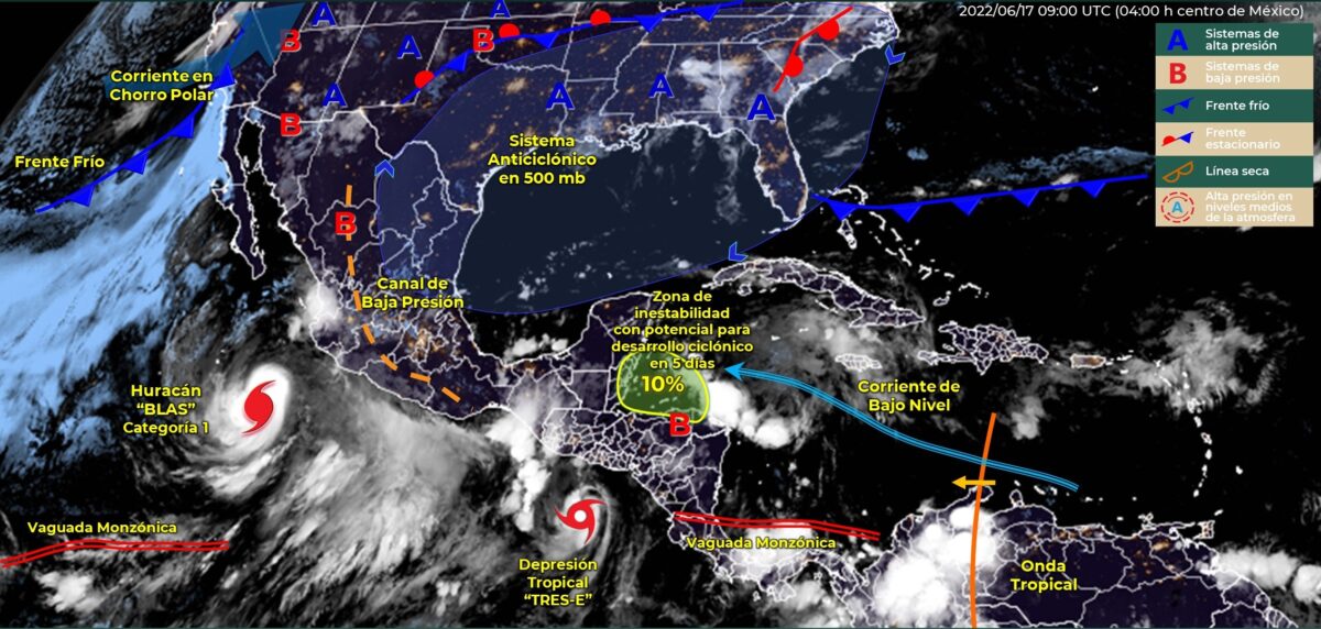 Pronóstico del clima para hoy viernes 17 de junio en Quintana Roo. Para este día, el ciclón tropical «Blas» se desplazará hacia el oeste-noroeste, alejándose paulatinamente de costas nacionales.