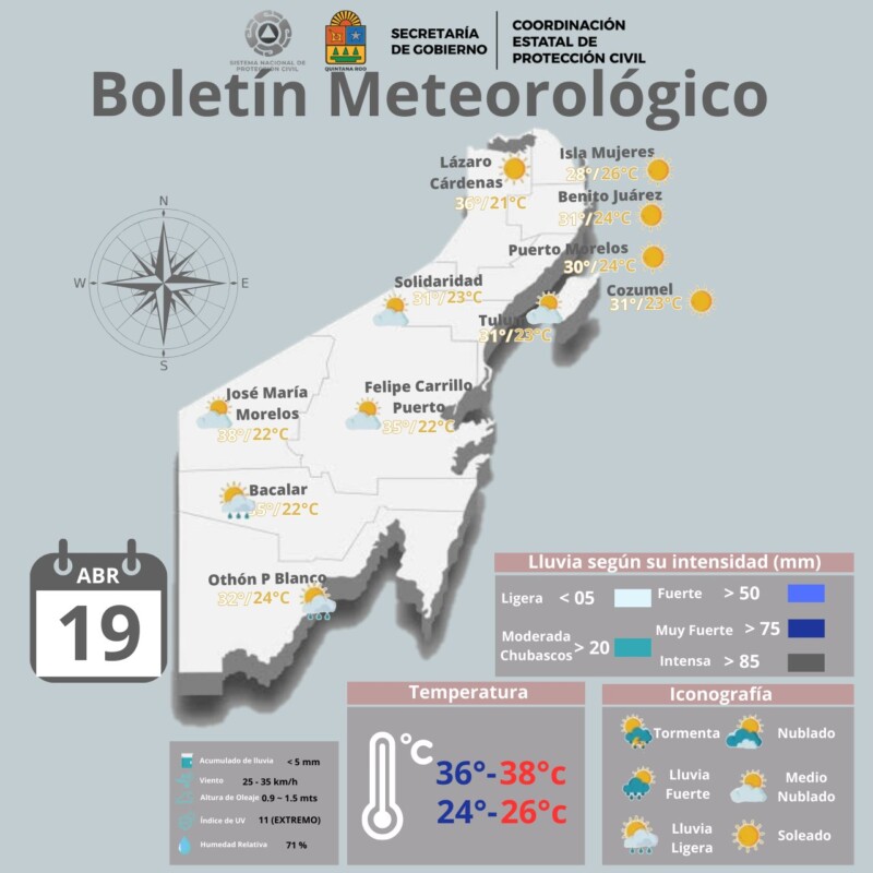Pronóstico del clima para hoy viernes 19 de abril de 2024 en Quintana Roo