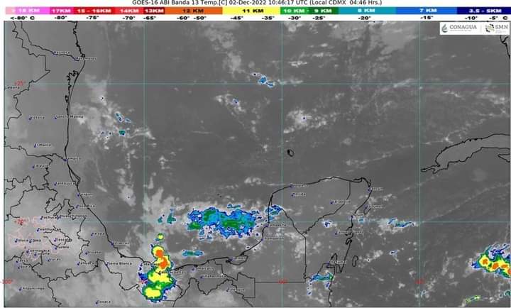 - Pronóstico del clima para hoy viernes 2 de diciembre en Quintana Roo; cielo medio nublado a nublado durante el día, con lluvias fuertes.
