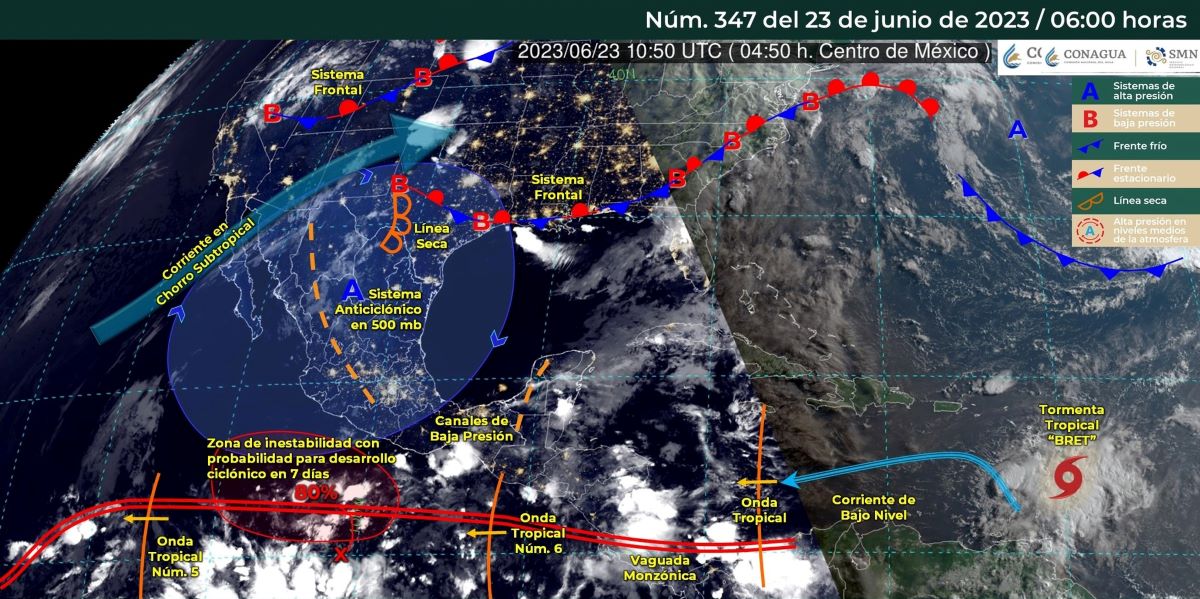 Pronóstico del clima para hoy viernes 23 de junio 2023 en Quintana Roo. Hoy, la onda tropical número 6 se desplazará sobre el sureste mexicano y en interacción con un canal de baja presión sobre la Península de Yucatán, ocasionarán lluvias muy fuertes a intensas en Oaxaca y Tabasco, con puntuales torrenciales en Chiapas.