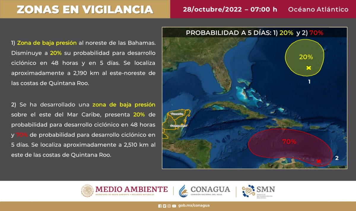 Pronóstico del clima para hoy viernes 28 de octubre en Quintana Roo. Para este día, el frente frío número 6 que recorrerá el norte y noreste del país e interaccionará con un canal de baja presión sobre el oriente del territorio nacional, originará chubascos en zonas del noreste y centro de México, con lluvias puntuales fuertes en el Estado de México, Puebla y Veracruz.