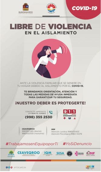 En diversas ocasiones Mara Lezama ha recomendado a mujeres benitojuarenses identificar qué tipo de violencia se está viviendo, ya que en caso de recibir golpes, amenazas, humillaciones, abusos, violencia psicológica y/o económica, les exhorta a comunicarse al Instituto Municipal de la Mujer (IMM), al teléfono 998 4141276 o al 911, descargar en su celular la aplicación “Mujer Segura Cancún”, así como usar las redes sociales para estar en comunicación con sus seres queridos y mantenerse informadas.