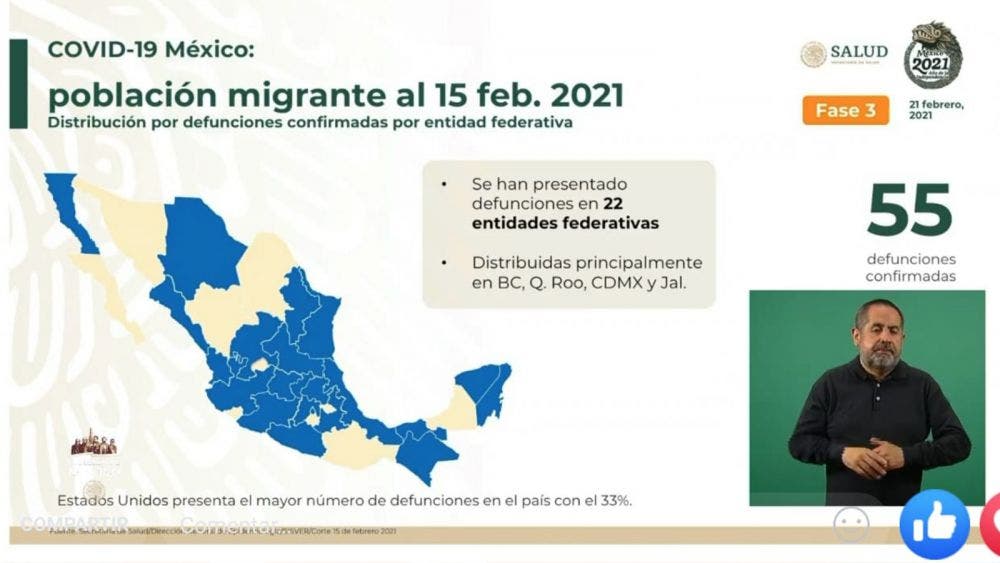 Quintana Roo, es la entidad que mas muertes por covid-19 registró en la población migrante en el país durante el 2020, en tanto que este 2021, continúa entre los primeros lugares con más casos, según un reporte de la Secretaría de Salud Federal.