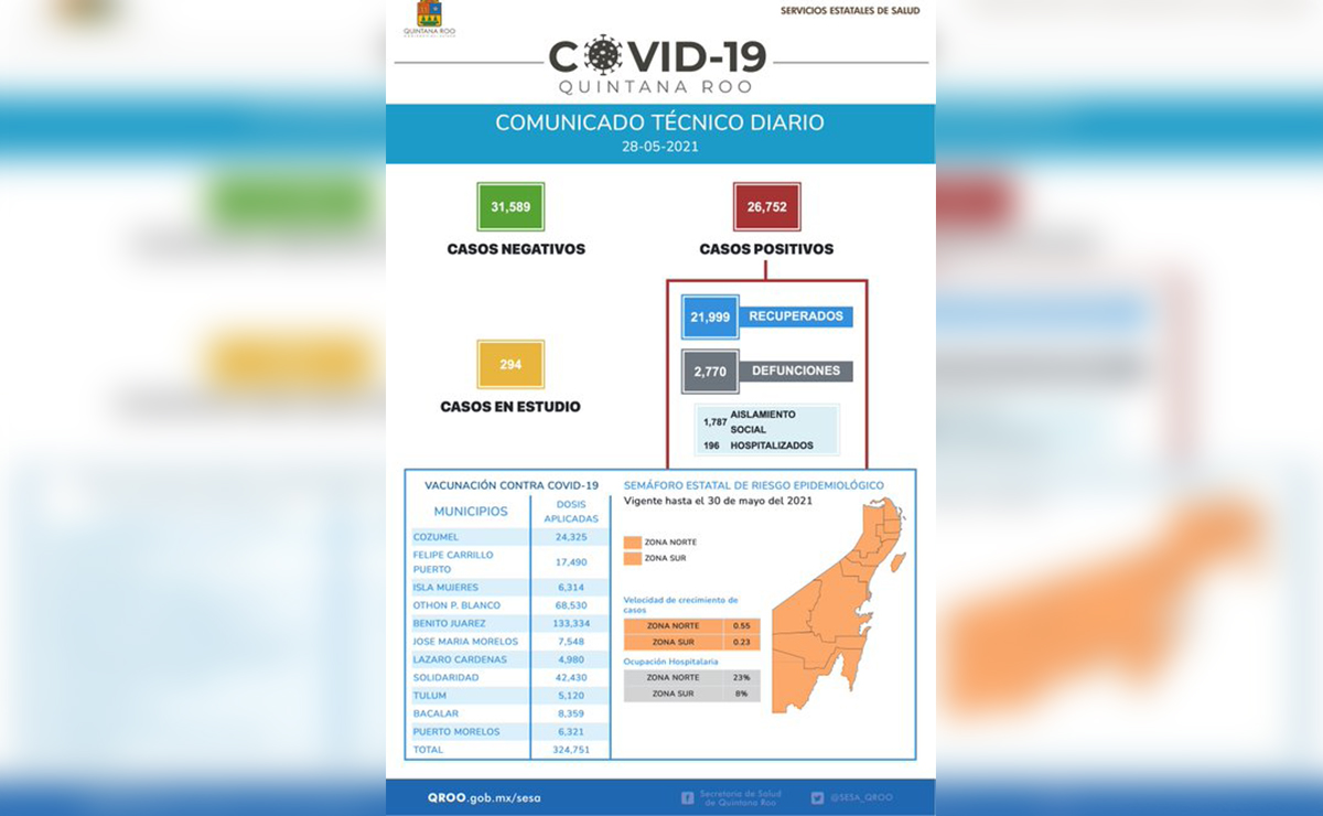 Quintana Roo registra 145 casos de covid-19 mas, la entidad continúa con una tendencia al alza, respecto a los contagios por el virus, así como por las defunciones que se han generado por las complicaciones de la enfermedad.