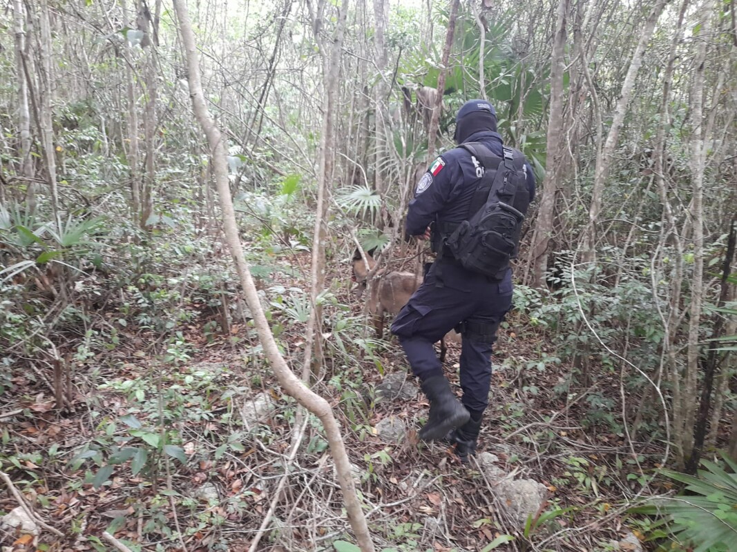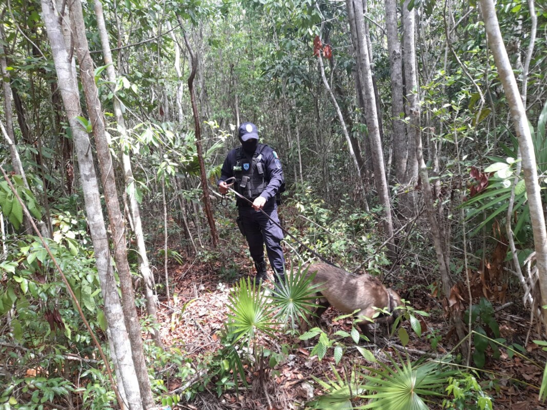 La SSC aportó personal especializado, así como un binomio canino de la Unidad Canina K9 de la zona norte de Quintana Roo identificado como Logan.