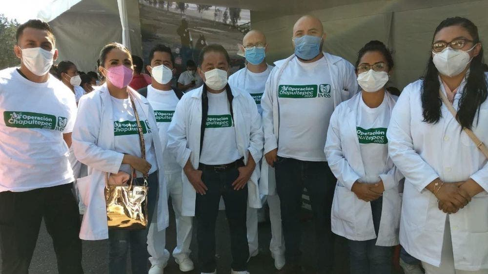 Además, recibirán la vacuna 420 trabajadores de la salud del Seguro Social que integran la Operación Chapultepec, que acudieron voluntariamente a solidarizarse con sus compañeros que han atendido durante meses a enfermos por COVID-19 en la Ciudad de México.