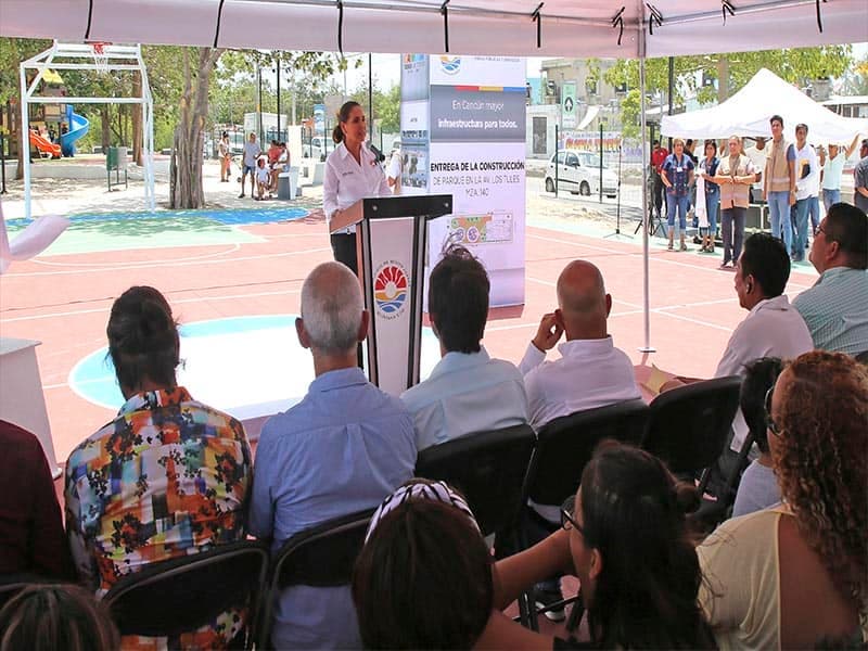 «Se recompone el tejido social cuando se hacen canchas deportivas, con eventos culturales o lugares donde niños y jóvenes puedan alejarse de los vicios para acercarse a la cultura y el deporte», expresó la Presidente Municipal, Mara Lezama, al entregar a los vecinos dos parques en la Supermanzana 248, correspondientes a las manzanas 136 y 140.