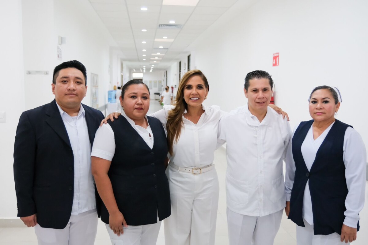 “Me encuentro aquí en su centro de trabajo, en el Hospital General de Cancún ‘Jesús Kumate Rodríguez’, donde enfermeras y enfermeros hacen todo para aliviar, curar, cuidar y acompañar a sus pacientes, siendo ese pilar en la recuperación de los seres humanos”, expresó la jefa del Ejecutivo a través de un mensaje en sus redes sociales.