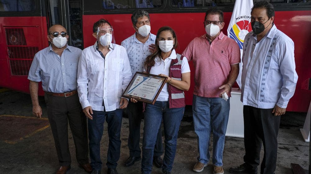 Reconoce gobierno de Cancún apoyo de transporte público en huracán «Delta».- Concesionarios y operadores de transporte público municipal fueron reconocidos públicamente por el Ayuntamiento de Benito Juárez por el apoyo brindado en el huracán Delta, ya que facilitaron la evacuación de turistas hacia los refugios y reestablecieron prontamente el servicio para la ciudadanía en general a pocas horas del impacto del fenómeno hidrometeorológico.