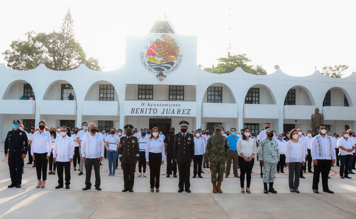 Durante la ceremonia cívica de inicio de las “Fiestas Patrias 2021”, autoridades del Ayuntamiento de Benito Juárez entregaron reconocimientos a instituciones y voluntarios participantes en las jornadas del Plan Nacional de Vacunación covid-19 en Benito Juárez.