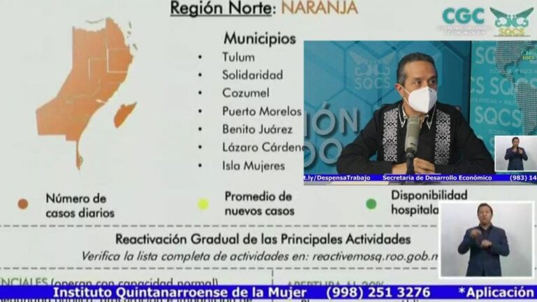 Ante el incremento de casos de COVID -19, el gobernador, Carlos Joaquín, determinó que la zona norte de Quintana Roo regrese a color naranja en el Semáforo Epidemiológico.