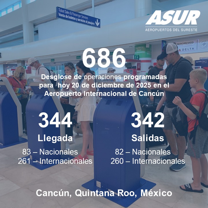 Te Puede Interesar: Aeropuerto de Cancún suma 569 operaciones aéreas en jornada sabatina