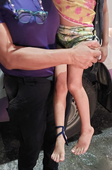 Al llegar al lugar mencionado en el reporte, encontraron a la menor de aproximadamente cinco años, la cual llevaba un pedazo de cordón atado a sus pies, por lo cual el personal especializado averiguo si este tenia como propósito mantenerla atada.