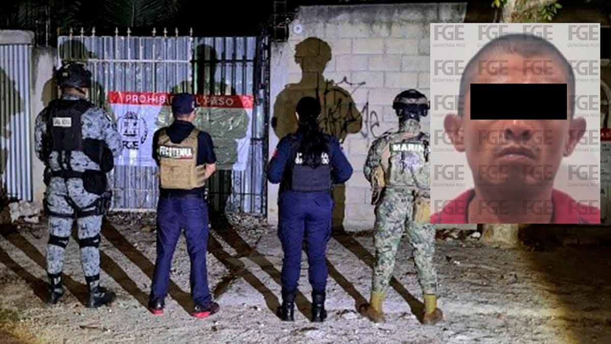 Durante la intervención policiaca fue detenido Cruz Armando “N”, quien sería el responsable del lugar al momento del cateo Foto: FGEQROO