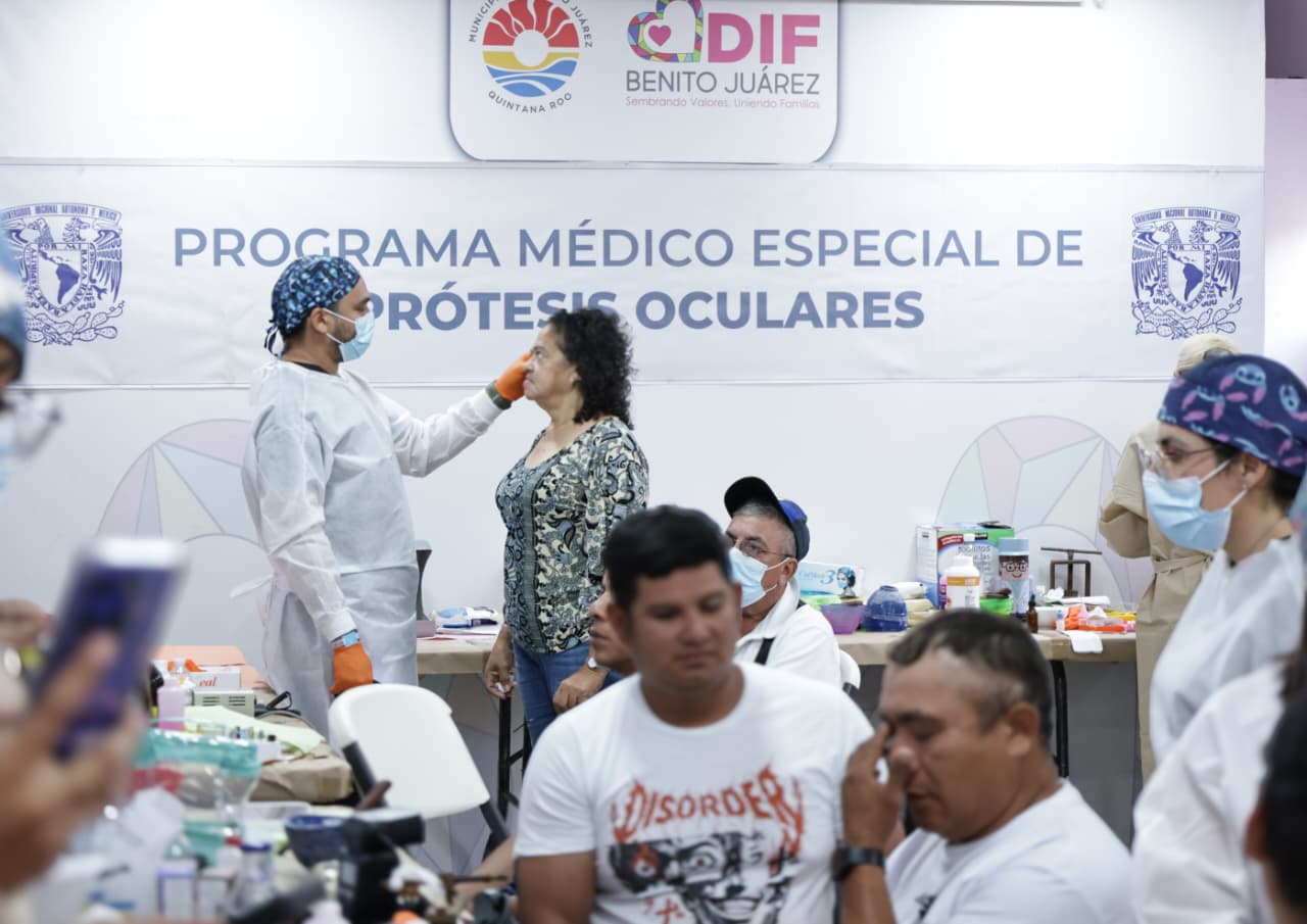 93 prótesis oculares de las cuales 13 fueron prótesis de primera vez, y que las y los beneficiarios del programa provienen de municipios del Estado como Benito Juárez, Puerto Morelos, Isla Mujeres, Bacalar, Felipe Carrillo Puerto, Tulum, Cozumel y Playa del Carmen así como de los estados de Yucatán, Tabasco, Ocosingo Chiapas y Veracruz.