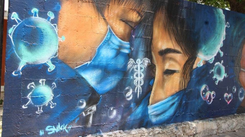 Rinden artistas grafiteros homenaje a héroes caídos por el Covid-19