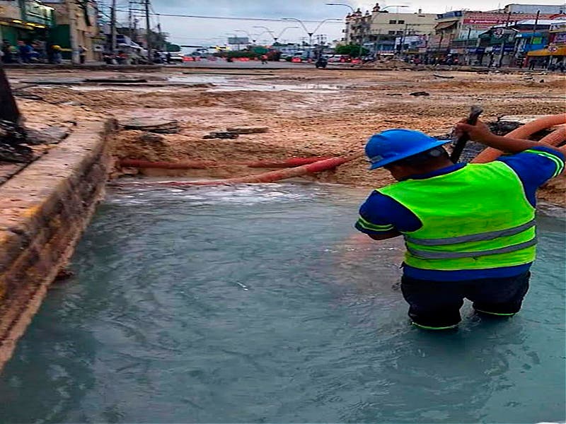 Distintas zonas de Cancún se vieron afectadas tras la ruptura de la tubería de Aguakan