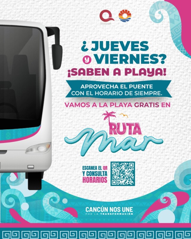 Para conocer más detalles sobre rutas, horarios y paradas, la ciudadanía puede consultar la página web del Instituto Municipal de Planeación en Desarrollo Municipal (Implan) que es: https://implancancun.gob.mx y sus redes sociales oficiales, además de solicitarlos vía WhatsApp a través de la estrategia “Chat Cun” en el número 998 778 4500.