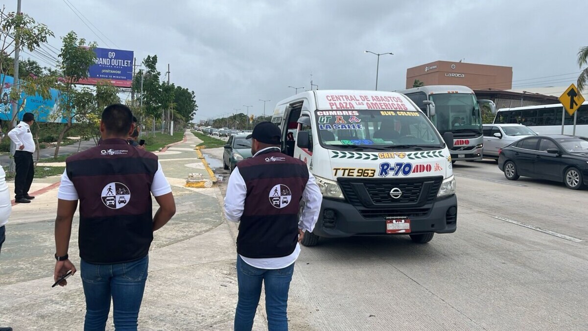 Sancionan a operador de combi en Cancún por circular en ciclovía y poner en riesgo al peatón