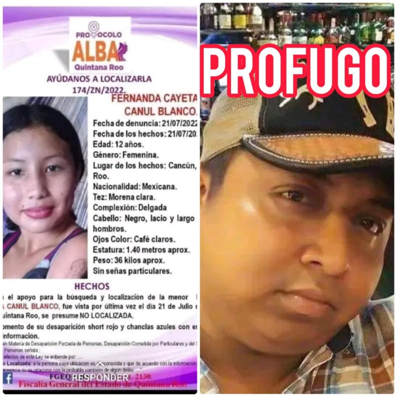 Fernanda Cayetana Canul Blanco, de tan solo 13 años, fue vista por ultima vez en la zona continental de Isla Mujeres, cuando se dirigía a trabajar con el taquero Marco Antonio “N”, y su esposa Angelica Velásquez, ambos ahora en prisión.
