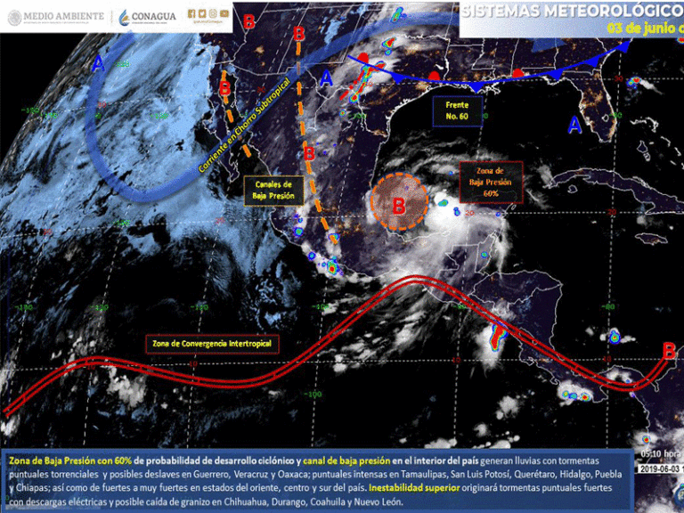Cancún, Quintana Roo.- Se espera hoy un día caluroso y lluvioso en Q. Roo; la Coordinación Estatal de Protección Civil informó que se mantiene un área de baja presión localizada en superficie al suroeste de la bahía de Campeche, en el Golfo de México, la cual se desplaza lentamente al Oeste-Noroeste sin cambios importantes en las últimas horas en su organización, de modo que mantiene la probabilidad media del 60% de convertirse en un sistema tropical en los próximos días, antes de que toque tierra frente a los estados de Veracruz o Tamaulipas, según información del Centro Nacional de Huracanes de Miami, Florida.