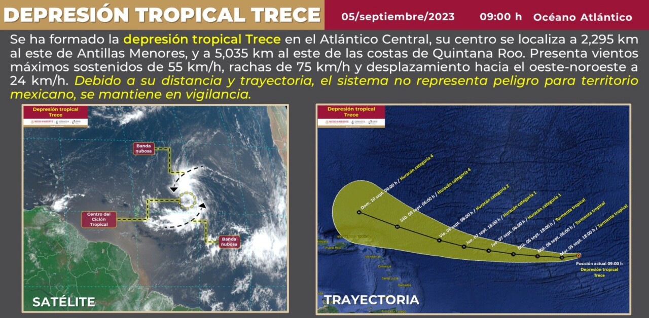La depresión tropical número 13 de la temporada de huracanes 2023 se formó durante la mañana de hoy martes 5 de septiembre.