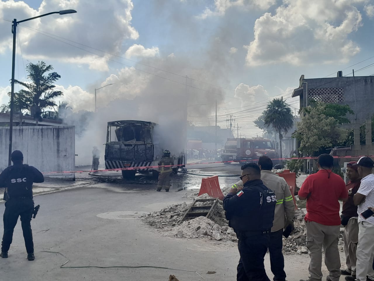 A través del numero de emergencias 911, ciudadanos de este núcleo poblacional en la Supermanzana 105 dieron aviso a las autoridades de que un autobús ardía en llamas solicitando el apoyo de los cuerpos de rescate.