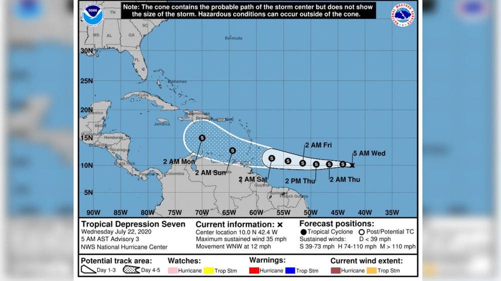 La Comisión Nacional del Agua, pronostica que para mañana, pueda alcanzar la fase de huracán categoría 1, con vientos de 120 a 150 km/h, pero regresar a Tormenta Tropical el fin de semana, y se espera que para el lunes 27 de julio, se ubique a mil 760 km al este sureste de Cancún, con vientos de 75 a 95 km/h, por lo que se recomienda a la población mantenerse pendientes de los boletines que emitan las autoridades correspondientes como CONAGUA o Protección Civil, así como de medios oficiales.