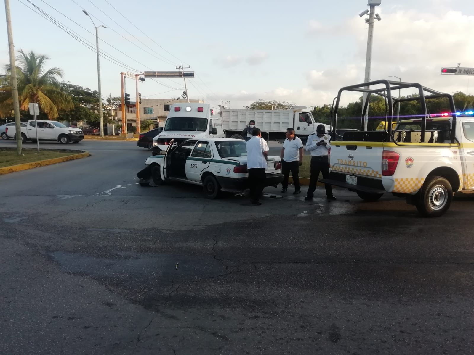El hecho de tránsito se registró en la avenida Andrés Quintana Roo con avenida Industrial, entre un vehículo particular y un taxi.