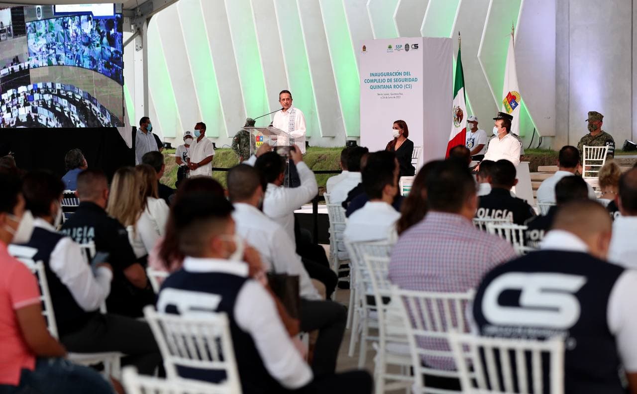 El gobernador Carlos Joaquín inauguró el Complejo de Seguridad C5 en Cancún, considerado como el más moderno y tecnológico de Latinoamérica, que responde a una de las demandas más sentidas de la ciudadanía en materia de seguridad y prevención, que permitirá recuperar la paz y la tranquilidad.