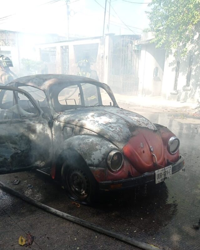 Fue un posible cortocircuito lo que provocó el siniestro de un vehículo Volkswagen Sedán (vocho), generando la movilización de las autoridades así como del Cuerpo de Bomberos.