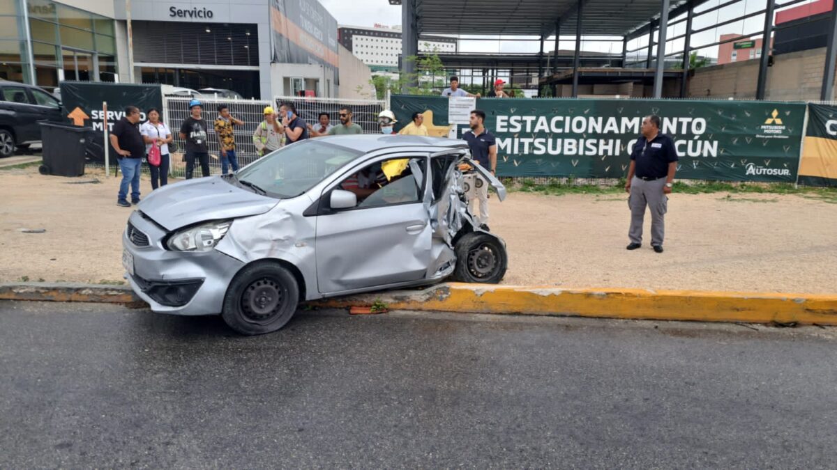 Un fuerte accidente de tránsito se registró esta mañana en la avenida Bonampak, en la Supermanzana 8 de Cancún.