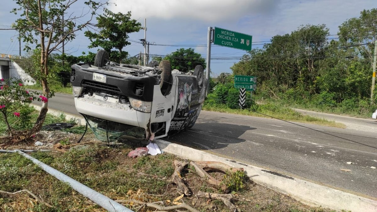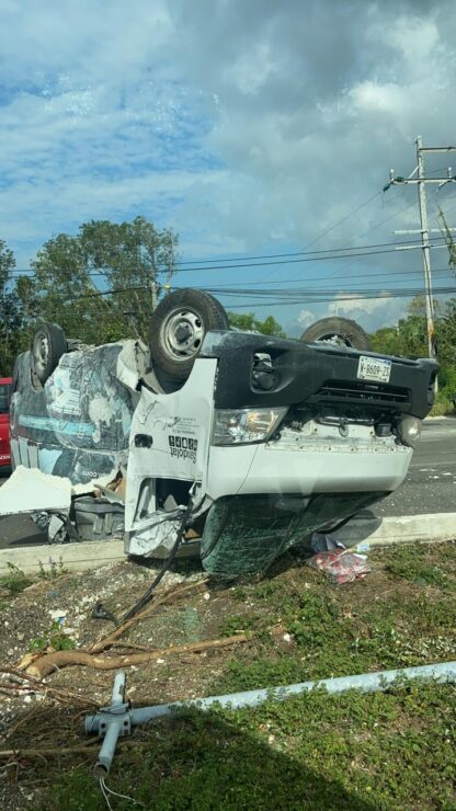 Un fuerte accidente se registró esta mañana de jueves en el Bulevar “Luis Donaldo Colosio”, en la carretera Cancún-Playa del Carmen, después que el conductor de una camioneta se estrellara contra un poste del alumbrado público para finalmente quedar volcado, en donde resultó con golpes de consideración.